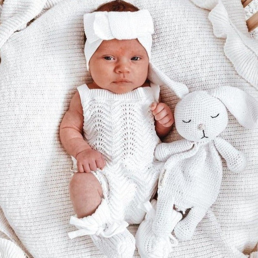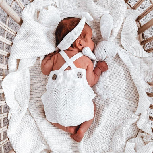 3 Little Crowns Knitted Blanket - Ivory