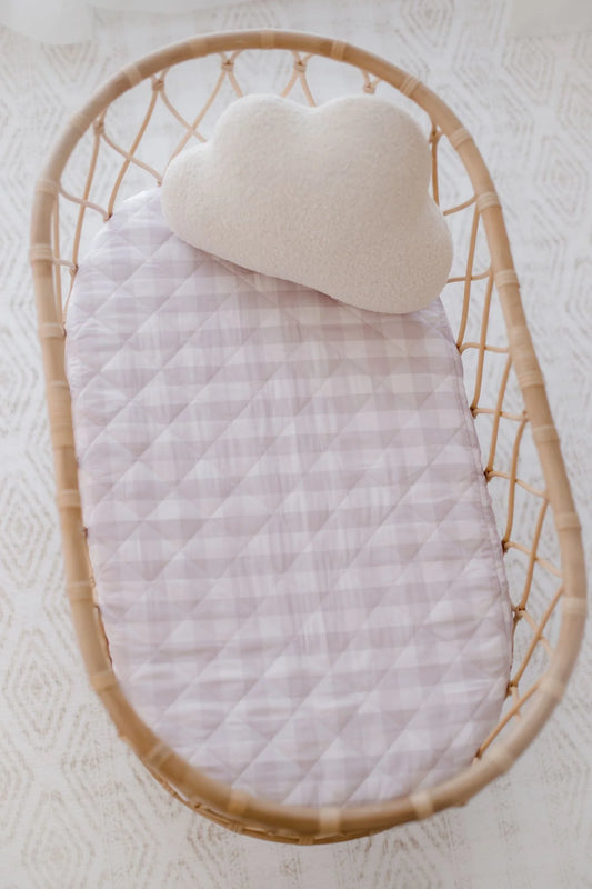 Bambella Waterproof Fitted Bassinet & Change Pad Cover - Blush Gingham