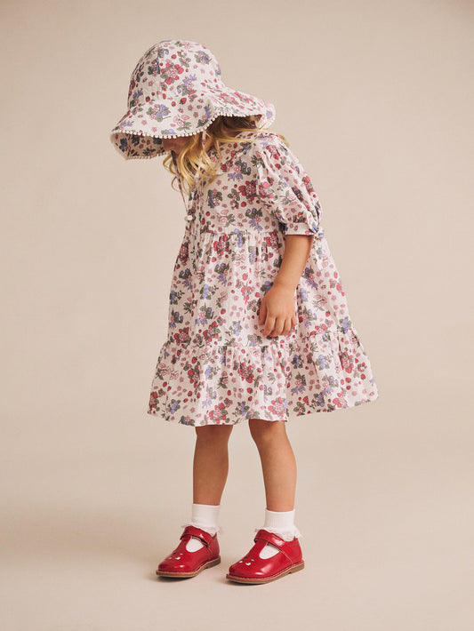HUXBABY STRAWBERRY GARDEN TIERED SMOCK DRESS