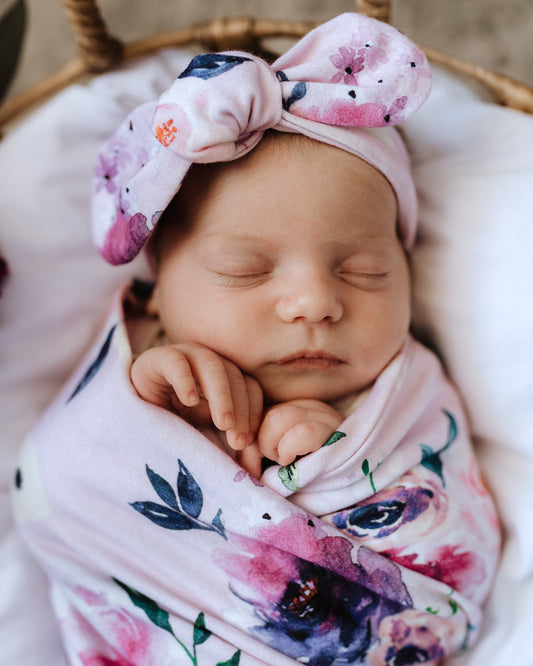 Snuggle Hunny Jersey Wrap and Headband Set - Floral Kiss