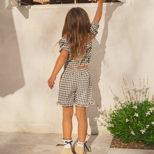 CINNAMON BABY FRILL SHORTS | BLACK GINGHAM