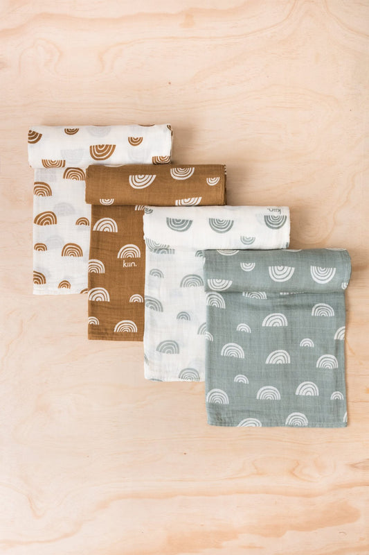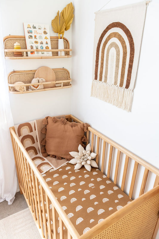Fitted Bamboo/Organic Cotton Cot Sheet - Rainbow - Umber/Ivory