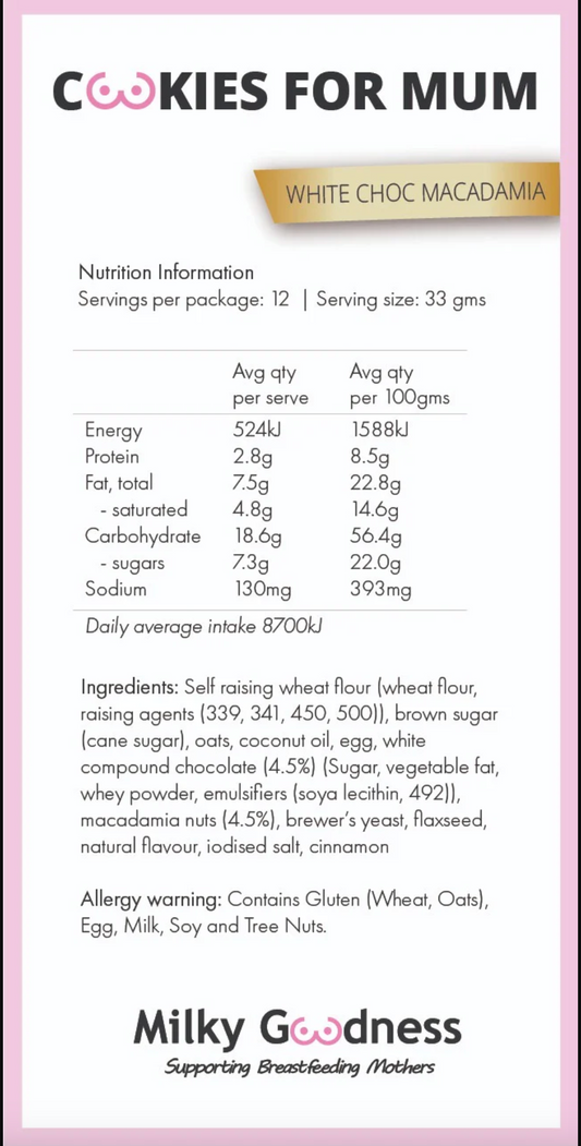 Milky Goodness Lactation Cookies - White Chocolate Chip and Macadamia
