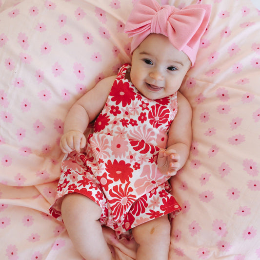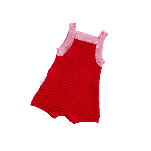 WILSON AND FRENCHY ORGANIC TERRY TIE PLAYSUIT | STRAWBERRY WAVE
