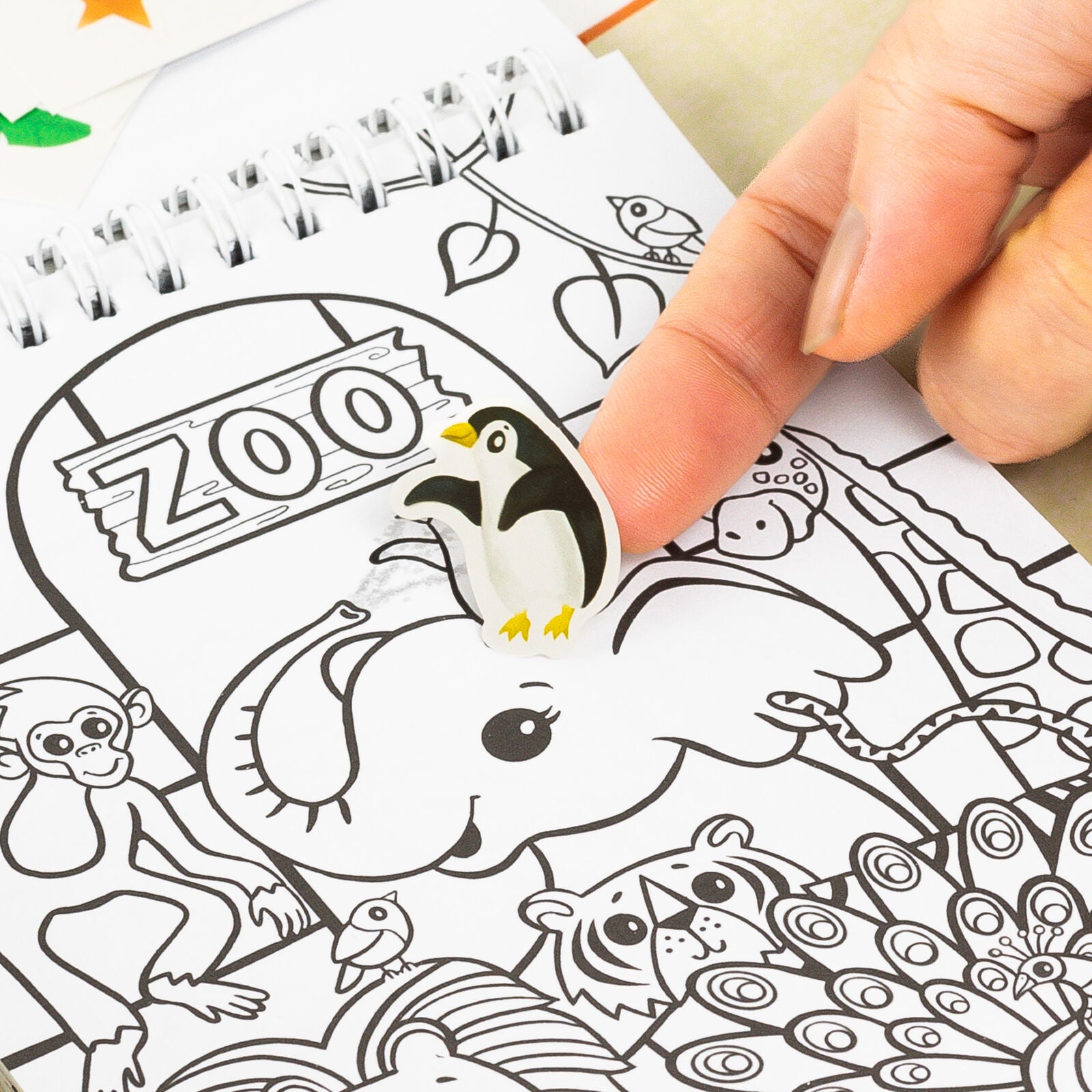 Add stripes to the zebra, invent a new species of snake or add some colour to the tigers while discovering elephants, giraffes and other famliar zoo animals, and maybe even some new ones! This imaginative colouring set includes ten vibrant markers and fun sticker sheets to elevate kids artwork to fridge-worthy status.