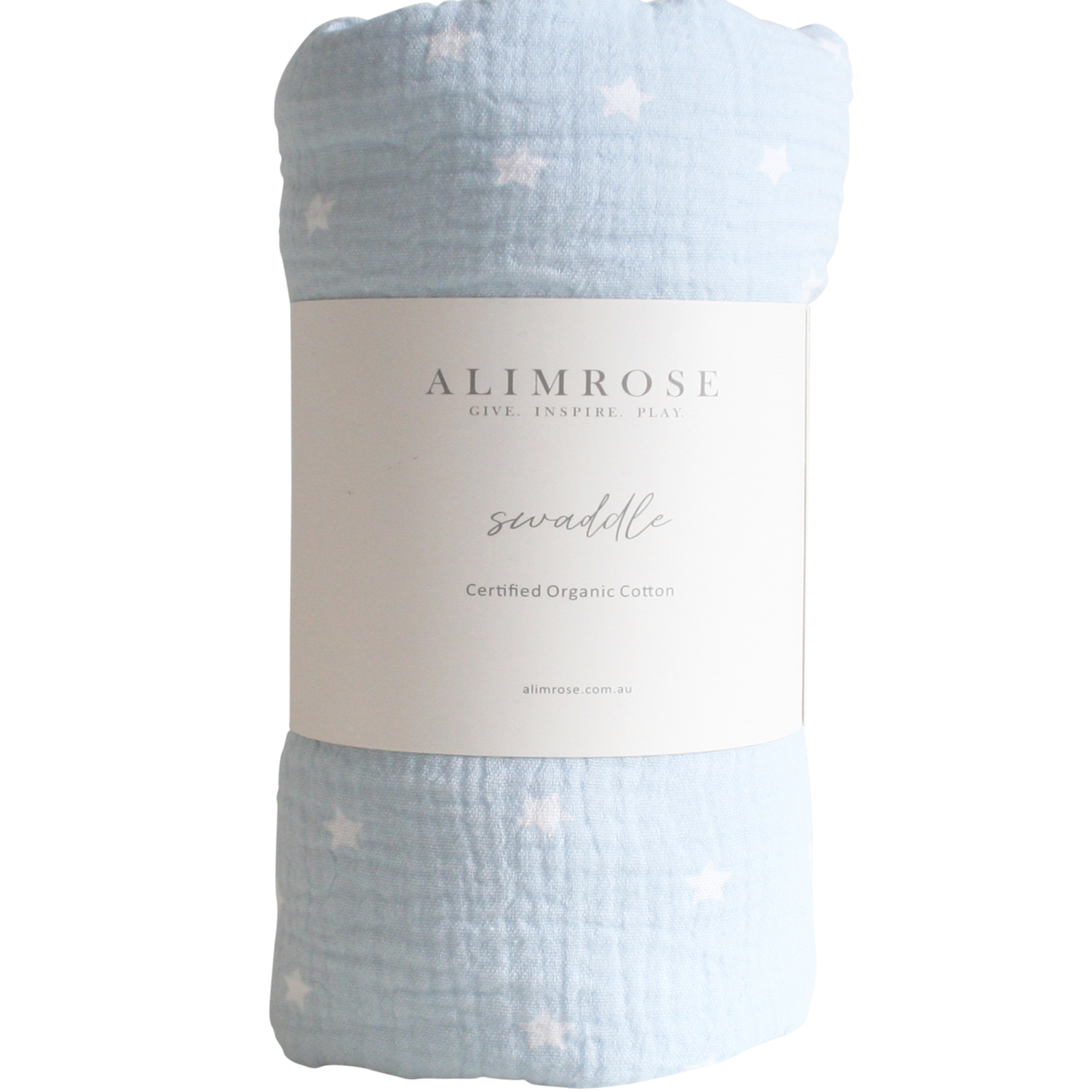 Alimrose beautifully soft cotton muslin swaddle generously sized at 120cm x 120cm.