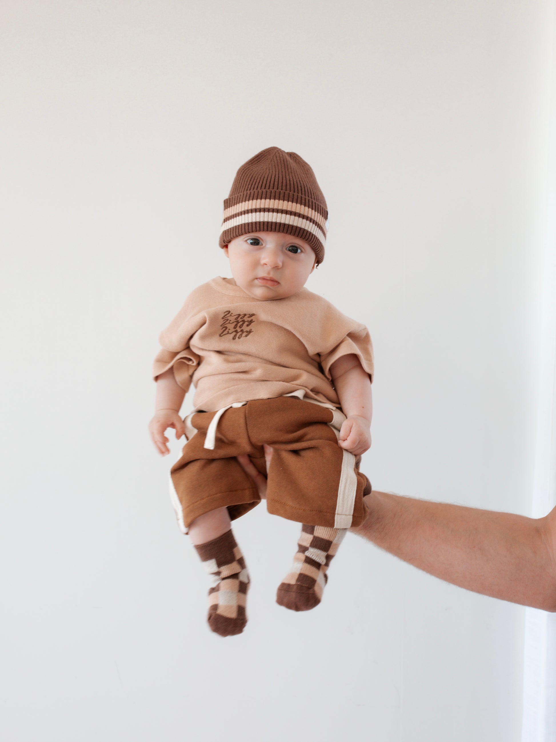 French terry tracksuit pants featuring coloured stripes down either side, functional drawstring and elastic waist for the perfect fit. Mix and match with items from our Checks Collection.