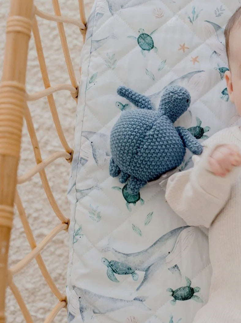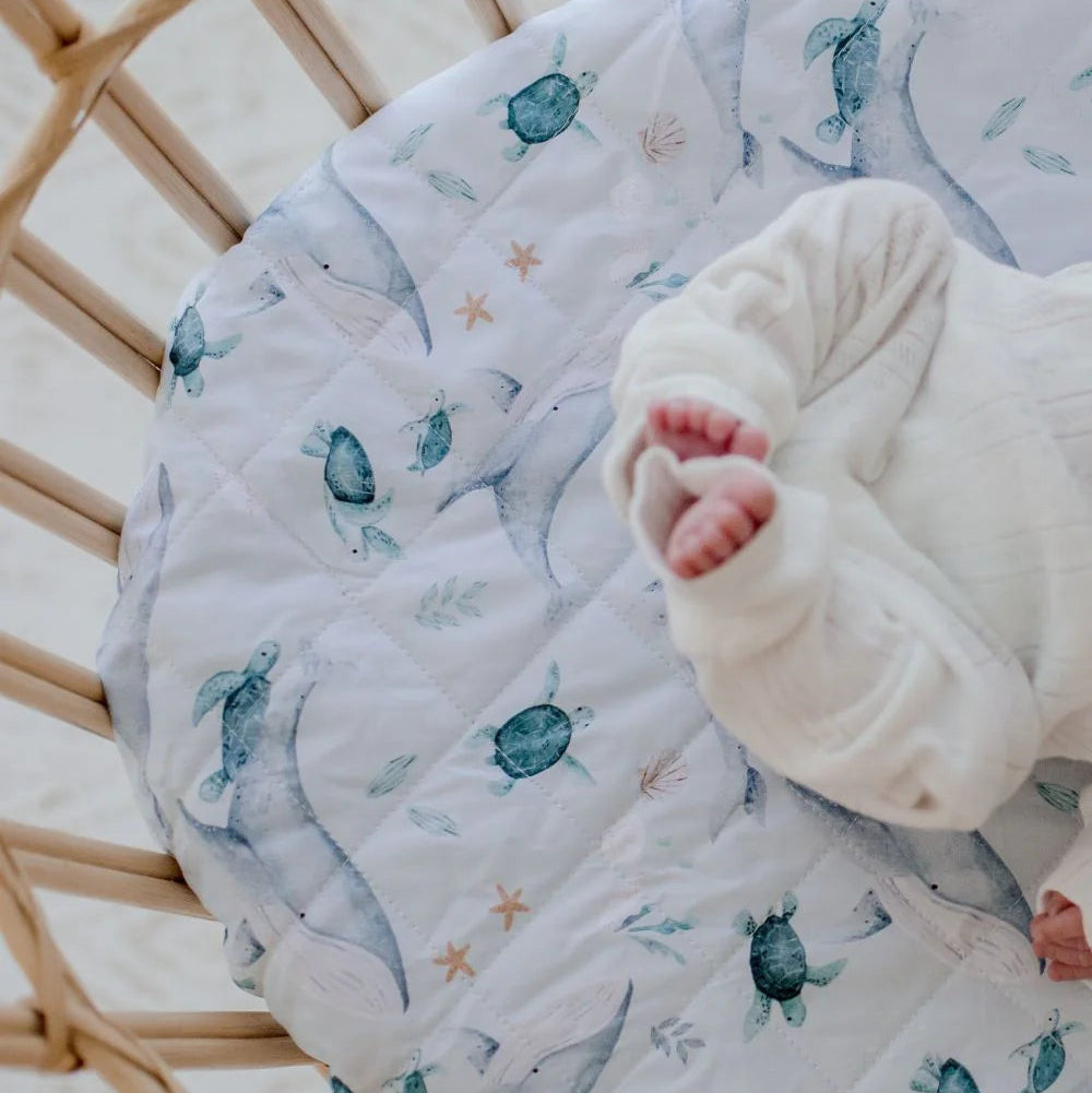 Bambella Waterproof Fitted Bassinet & Change Pad Cover - Turtle Bay