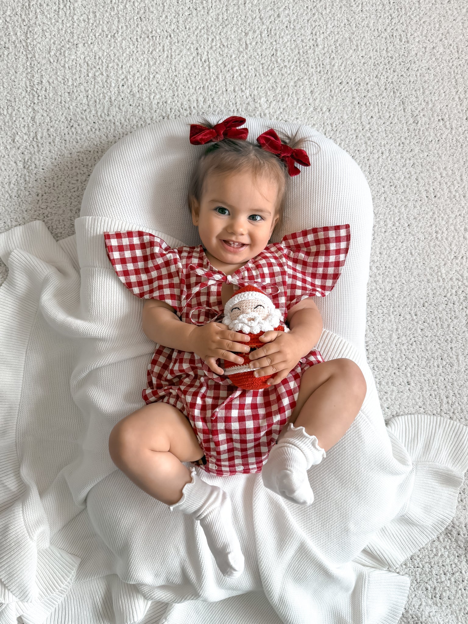 BLOSSOM AND PEAR FLUTTER SLEEVE ROMPER | RED GINGHAM