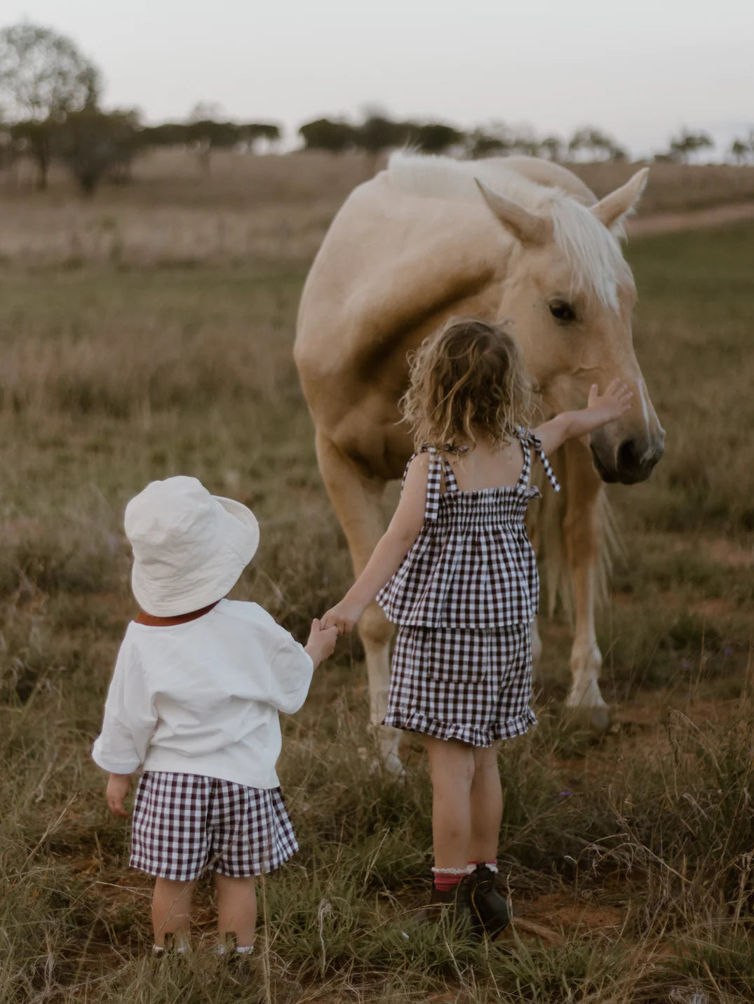 BLOSSOM AND PEAR SHORTS | COCOA GINGHAM