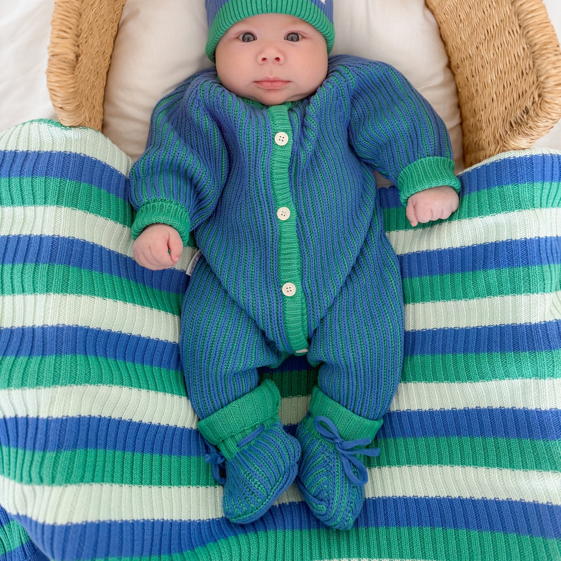 Knitted two tone booties to compliment our Aspen, Olly, Ace, Enzo + Otto Collections. Functional drawstring to ensure booties don't fall off when worn.