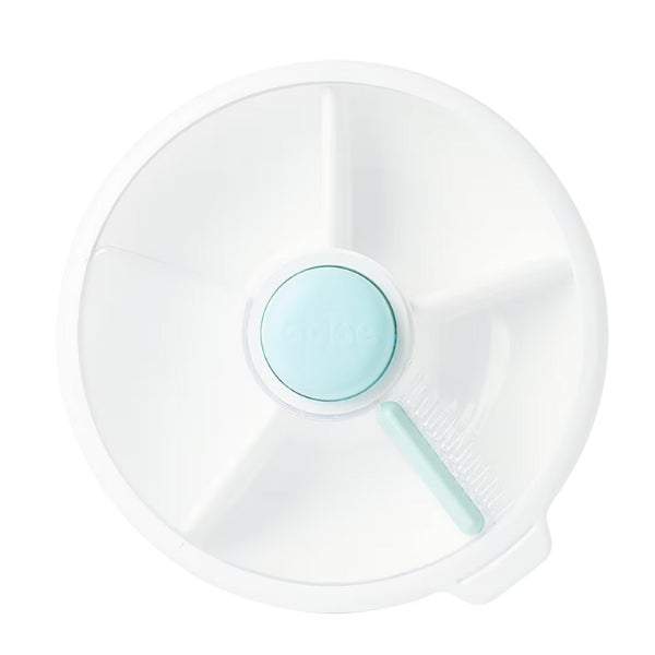 Featuring a safe, fun, and engaging push button spinner, empower your child’s appetite and learning with this unique design snack container. Utilising a durable food safe construction, this easy to use snack container features a spinnable tray with 4 individual compartments, including a larger double size compartment, suitable for sandwiches and other foods, a no slip silicone ring base, and spill and leak-resistant sliding door lid.