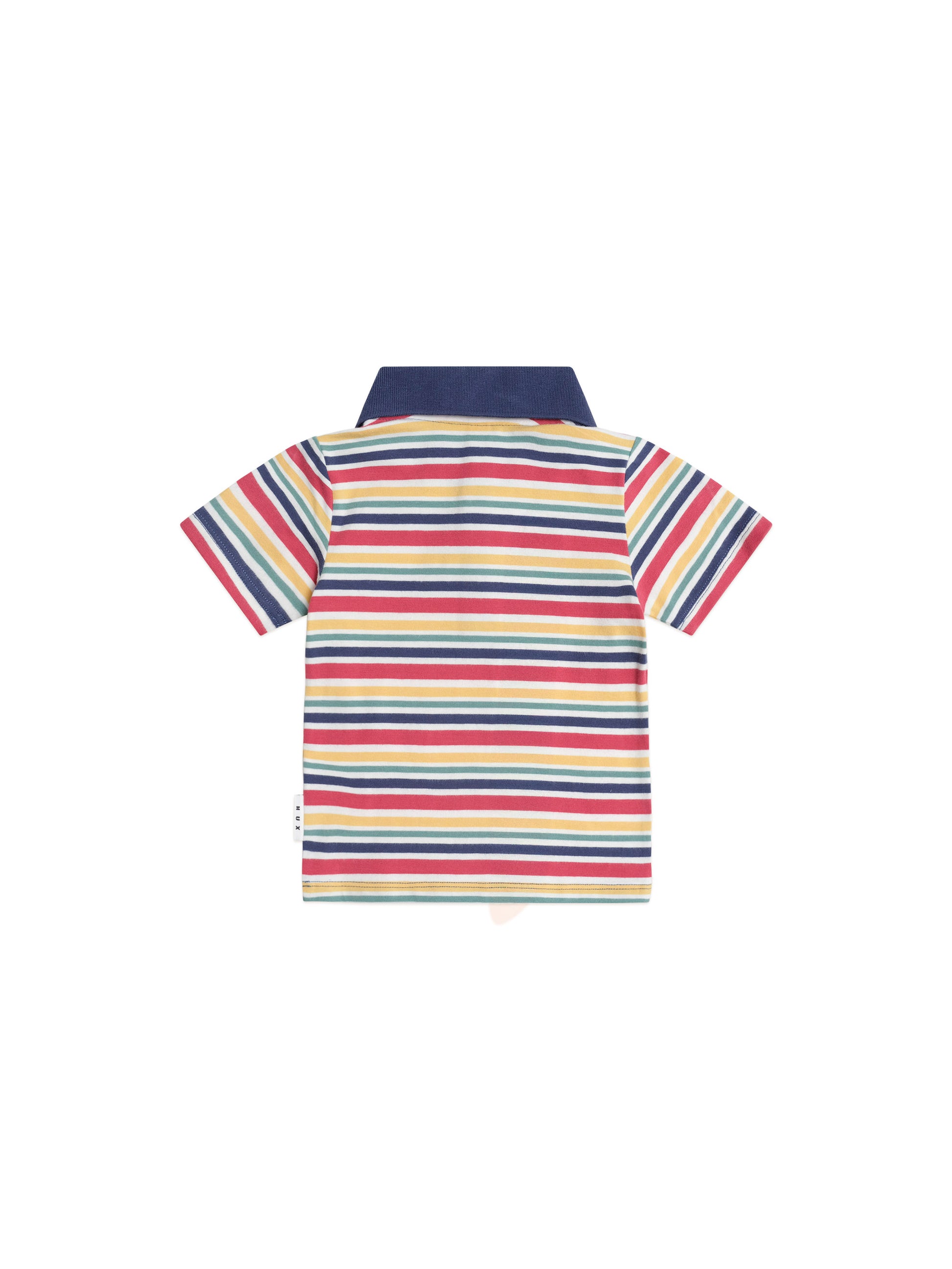 This short-sleeved polo in vintage stripes features a sporty, rugby-style collar and three buttons at the neck. Made from cloud-like organic cotton, it has a peeping Huxbear pocket detail and can be dressed up or down, depending on the day.