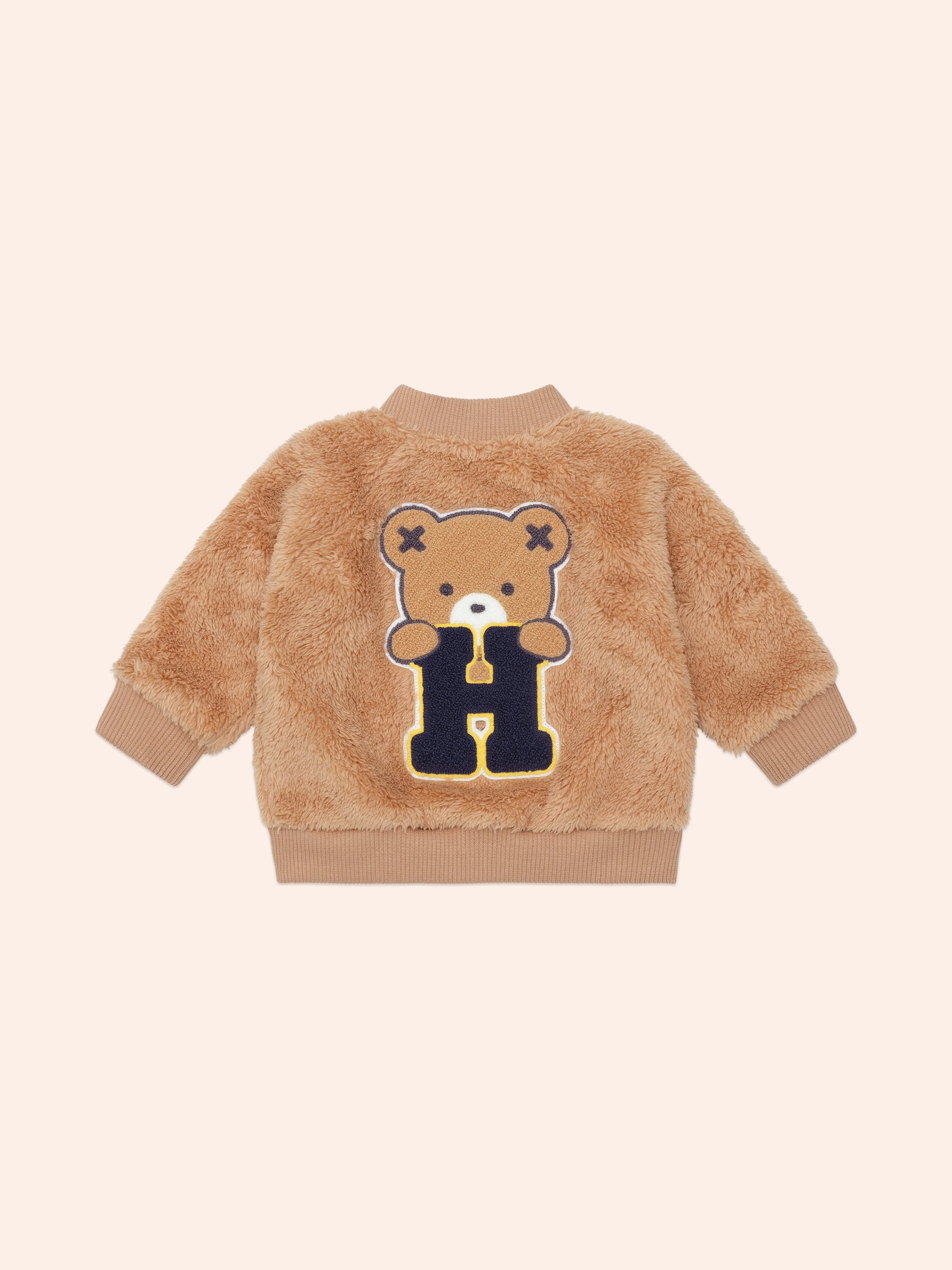 A soft and furry varsity jacket perfect for layering on colder days. Made with extra furry fabric, this cool weather must-have feels like a hug you can wear. It has a zip for easy dressing and our classic Huxbear embroidery, for strength and courage.