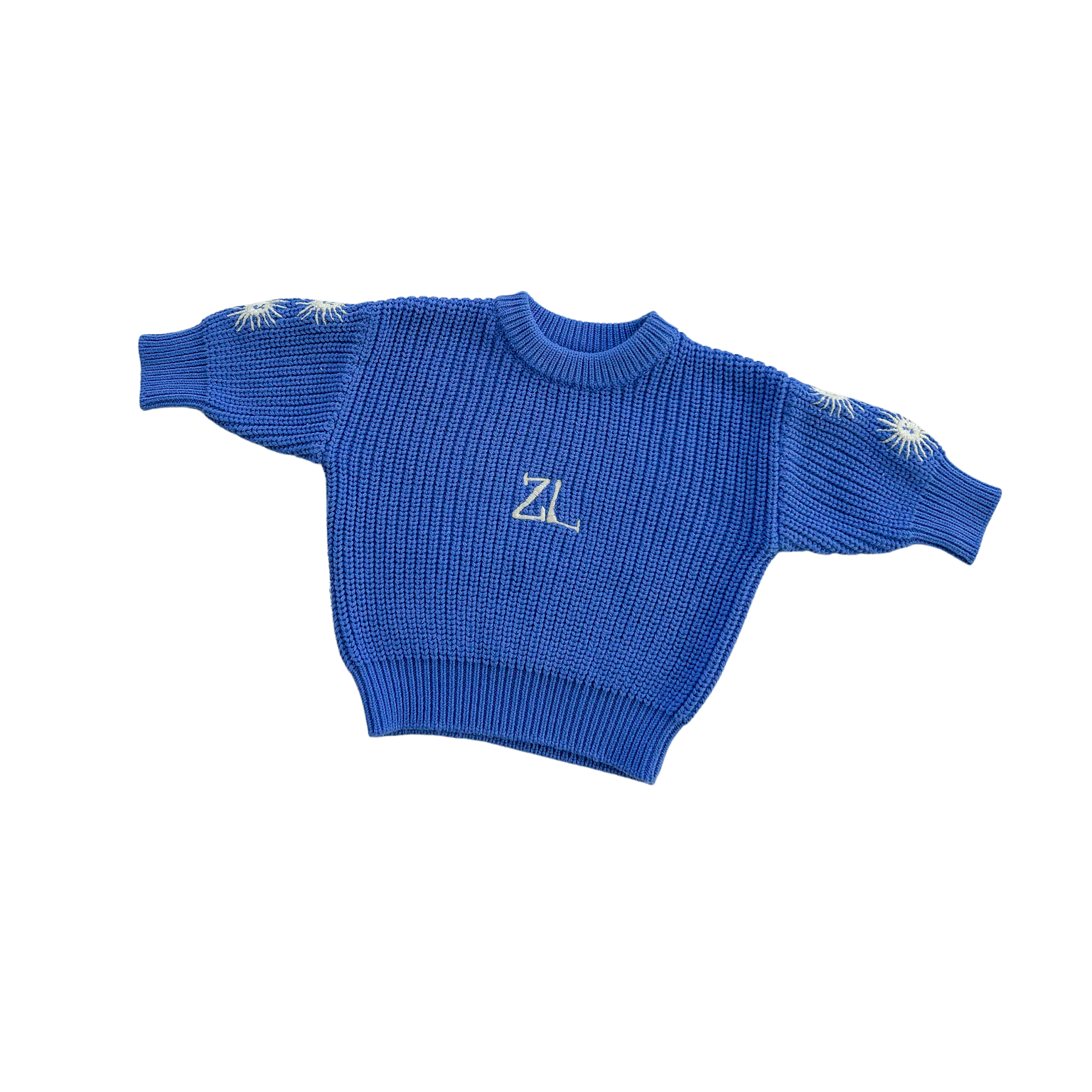 Our chunky knit jumper in our Enzo colour featuring an embroidered ZL Logo on the front and embroidered Otto design on the sleeve. Mix and match with our Aspen, Otto, Olly + Enzo Collections.