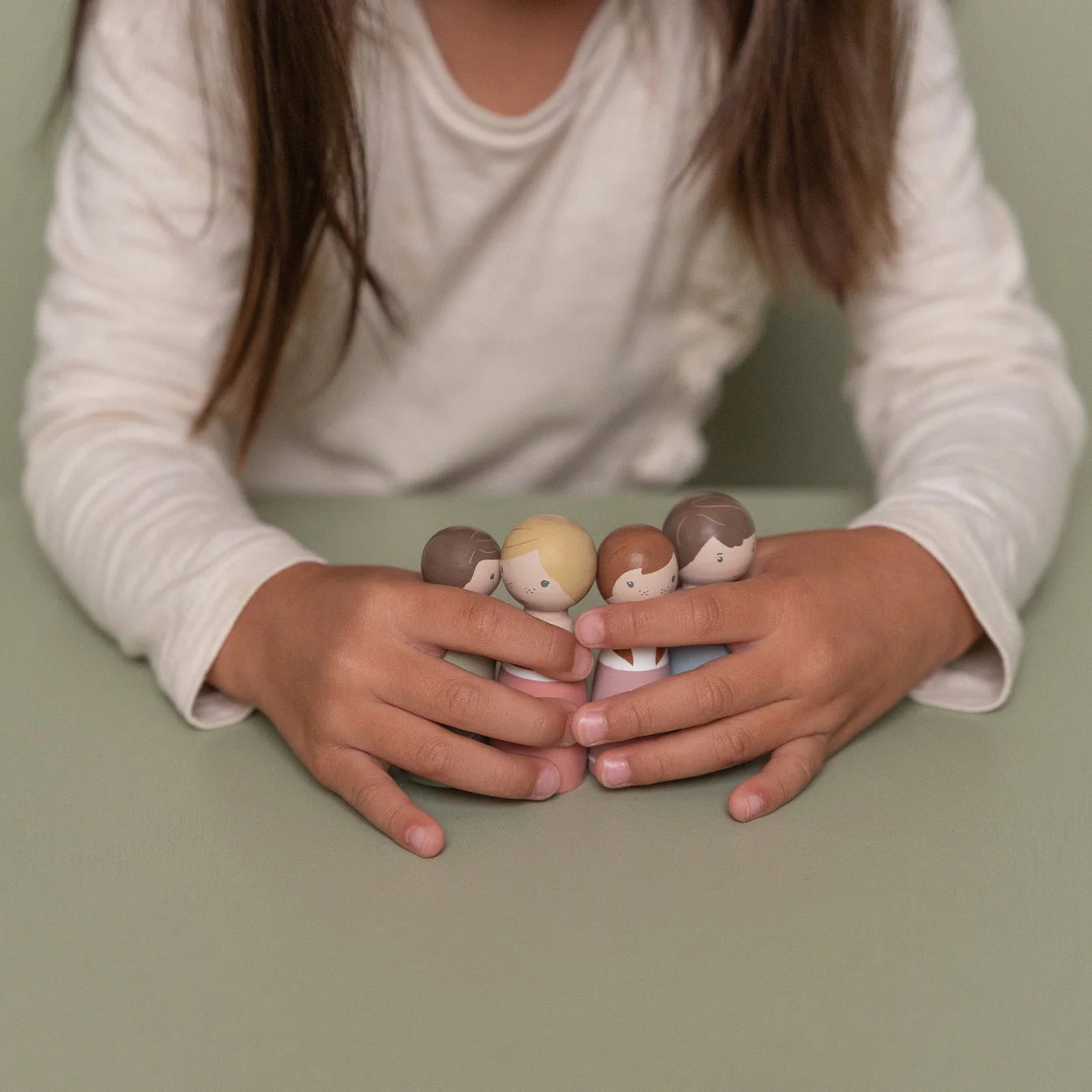 This family is a set of wooden peg dolls, consisting of a father, mother, son, and daughter. This expansion set is a great addition to Little Dutch’s new dollhouse. A guarantee for hours of fun.