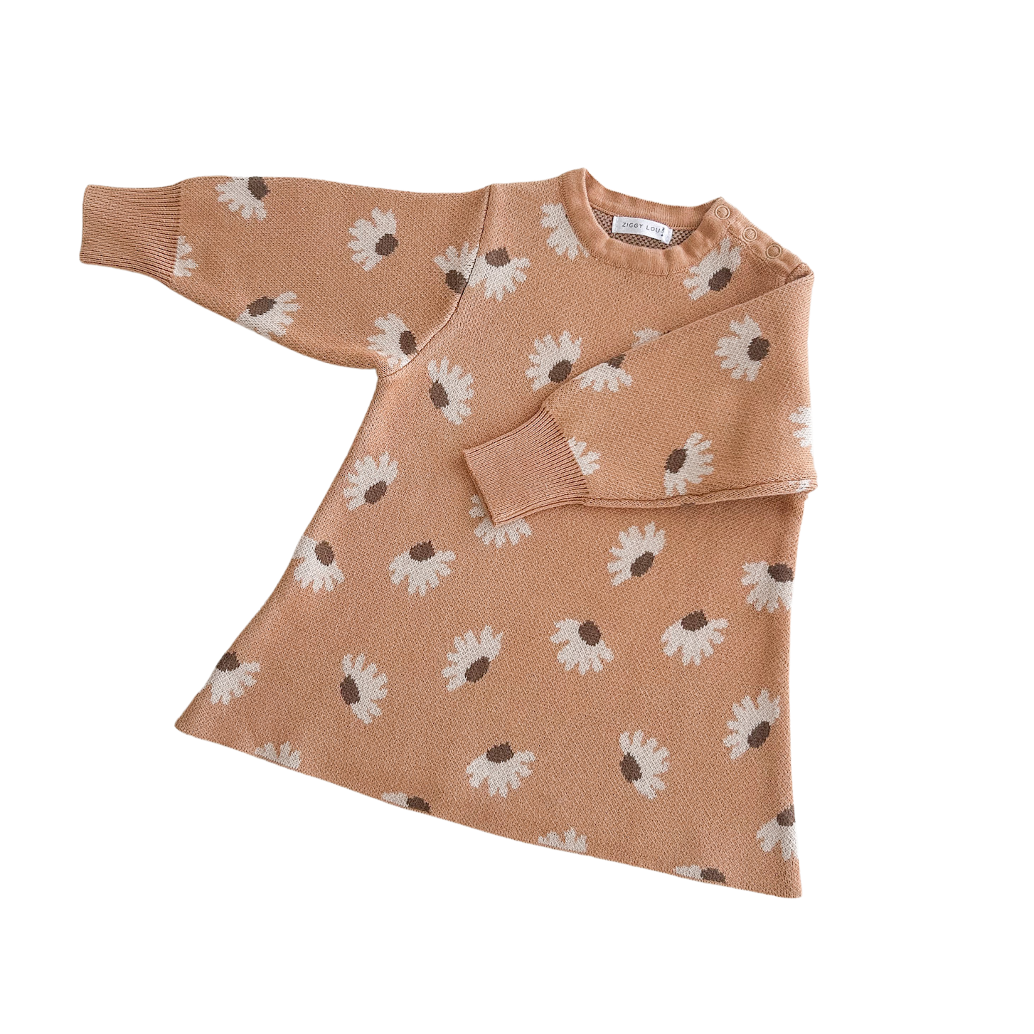 Our jacquard knitted long sleeve dress features our Hazel floral design. Press snaps on the shoulder for easy on/off. Mix and match with items from our Hazel and Cyrus Collections.