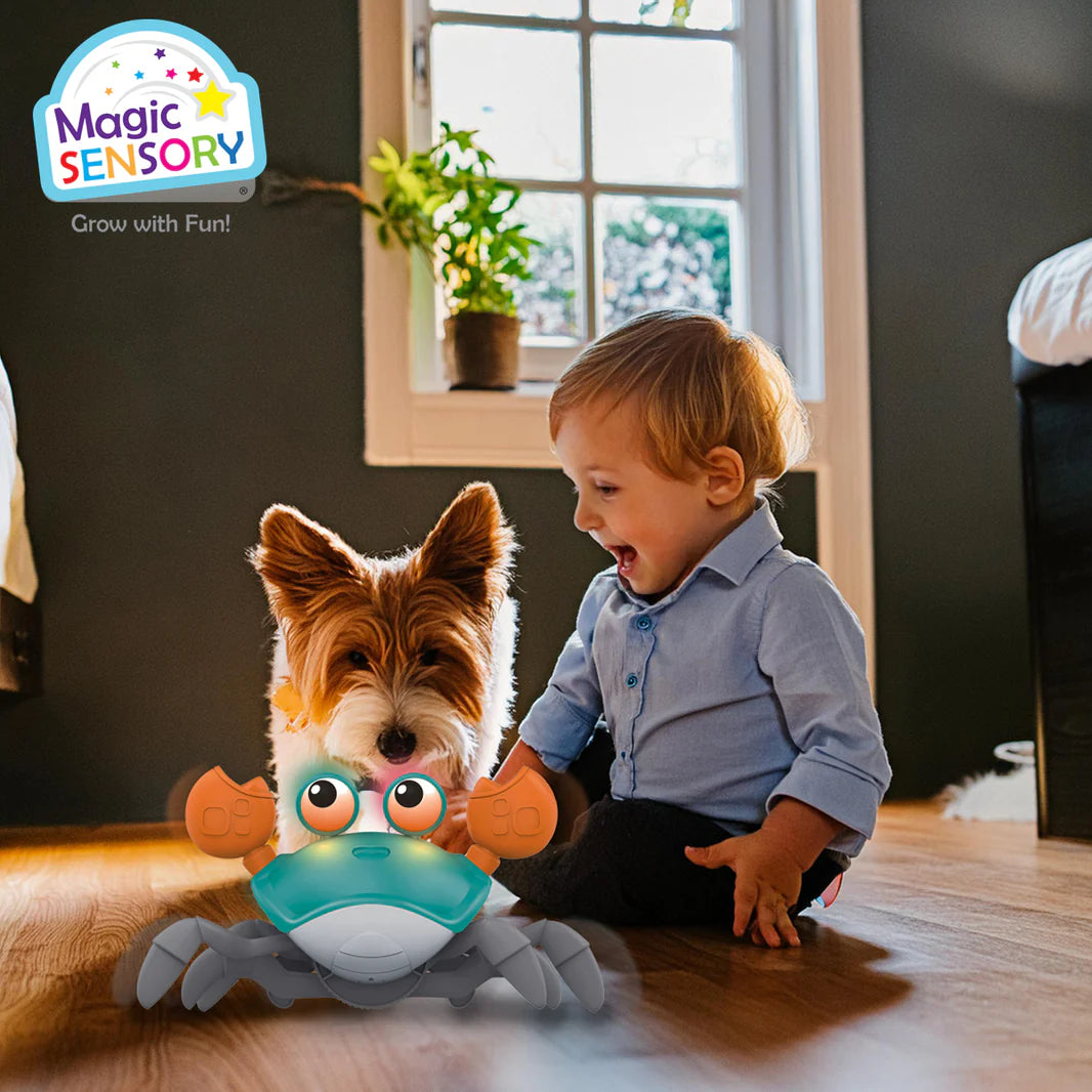 But that's not all; this clever crab is equipped with sensors that detect obstacles in its path, ensuring smooth navigation and endless fun. When it encounters an obstacle, the Crawling Crab Toy lights up and plays cheerful music, adding an extra element of excitement to playtime.