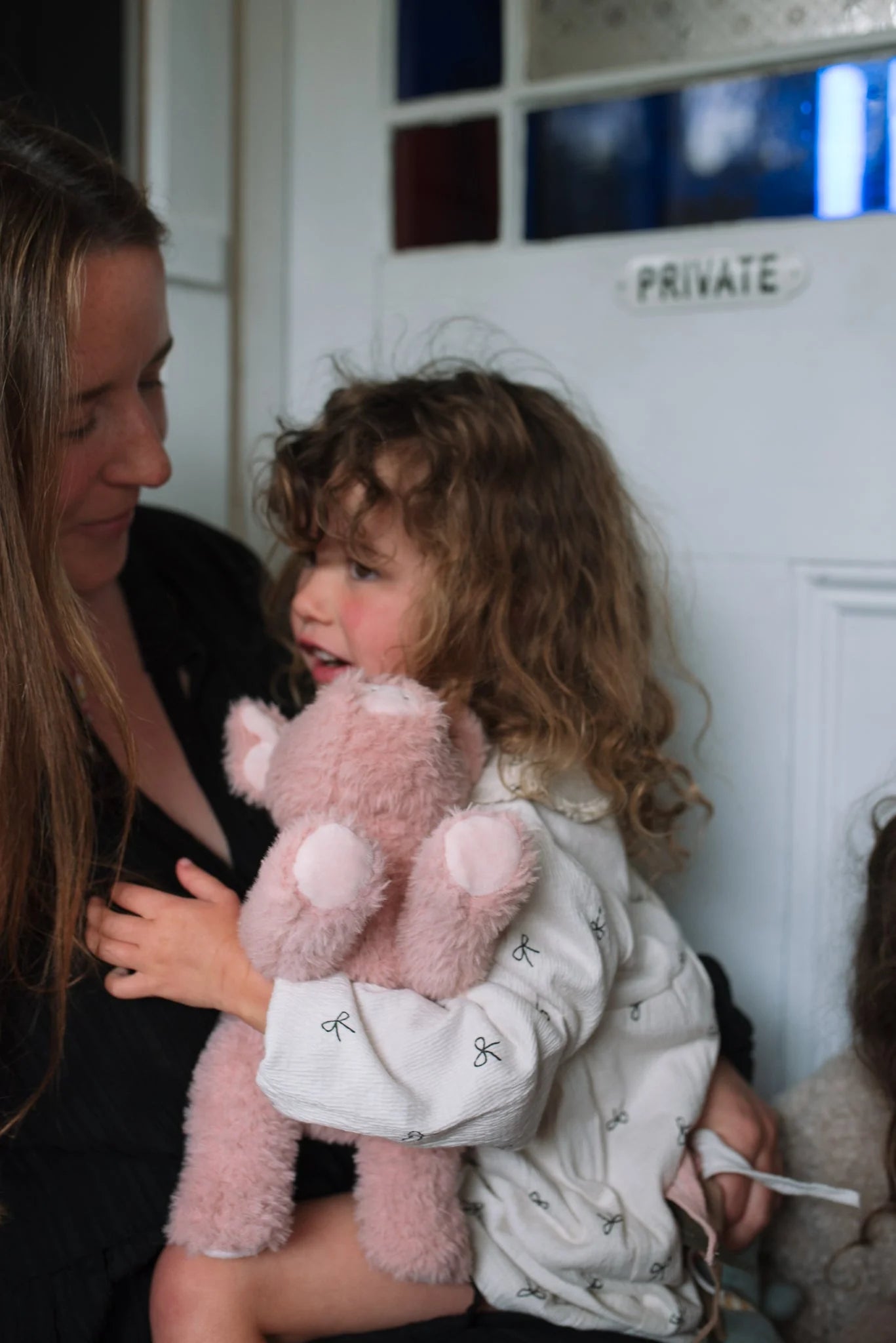 The sweetest piglet on the Nana Huchy Farm Paloma loves nothing more than curling up for a cozy nap in her old rusty pail, dreaming of muddy adventures. Paloma's favorite treat is a sticky toffee apple, she can never resist that sweet, chewy goodness! After a long day of farmyard fun, she adores bath time, giggling as the bubbles pop around her snout. With her gentle heart & playful spirit, Paloma has a way of making everyone around her smile. Life on the farm just wouldn't be the same without her!