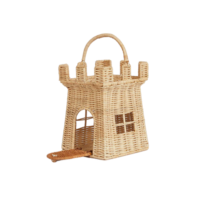 This 100% handwoven Castle is complete with turrets, a handle and a contrast rattan drawbridge that opens and closes with a little wooden button and loop for all those Prince and Princesses that might just visit!