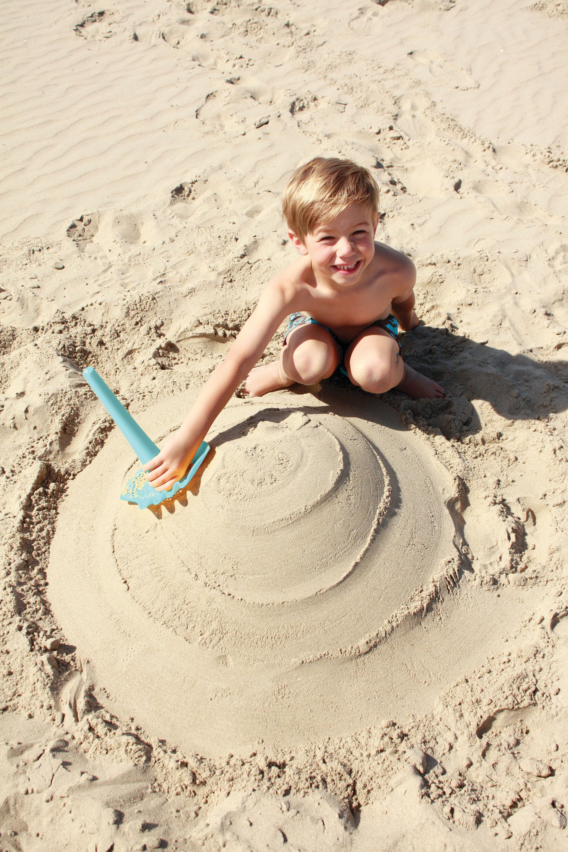 Part shovel, to help kids dig holes, build foundations and carve out moats, part sand sifter, to help remove shells and other sediment, for smooth, shapeable sand, part rake, to let kids create extra designs.