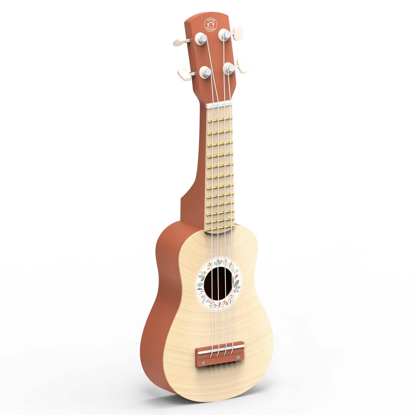 Music ignites all areas of child development, hence, this soft nylon four string toy ukulele is a must have for your little one! The ukulele is an earthy terracotta and wood colour, with surface coating designed to prevent finger injuries. As it is easy to carry around, your child will enjoy the sound and actively strengthen and develop their musical talents anywhere at anytime. This toy is crafted from sustainably sourced wood from FSC® certified forests and coated with non toxic paint.