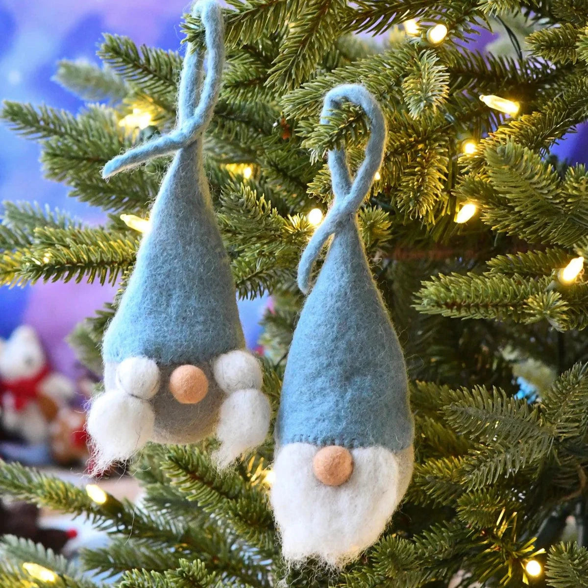 Hang these crafted baubles on your tree with a loop on their hats, and let your Christmas tree shine with the spirit of the season!