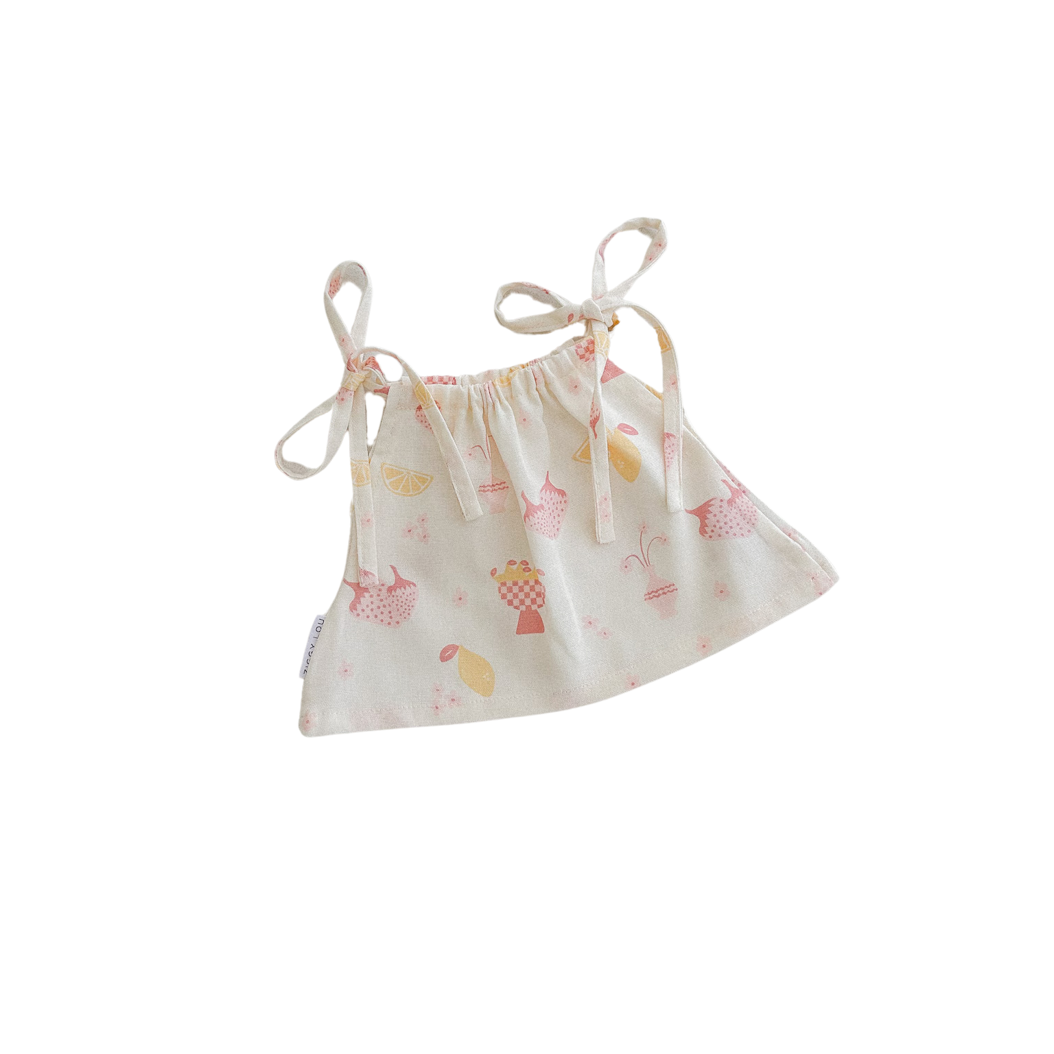 Linen blend singlet featuring our August printed design. Functional ties at the shoulder for the perfect fit. Mix and match with items from our August, Clementine + Paloma Summer Collections.