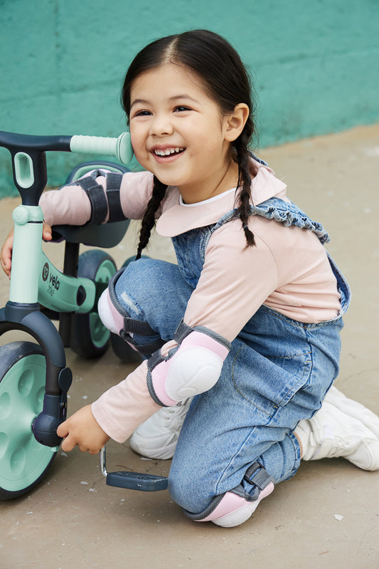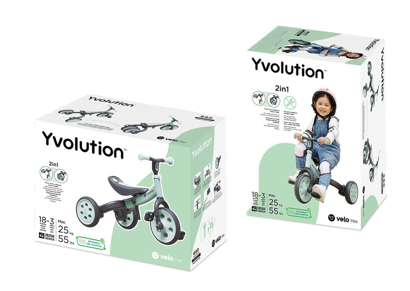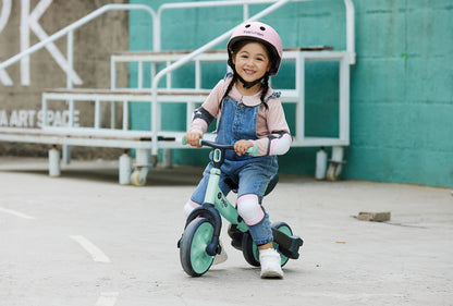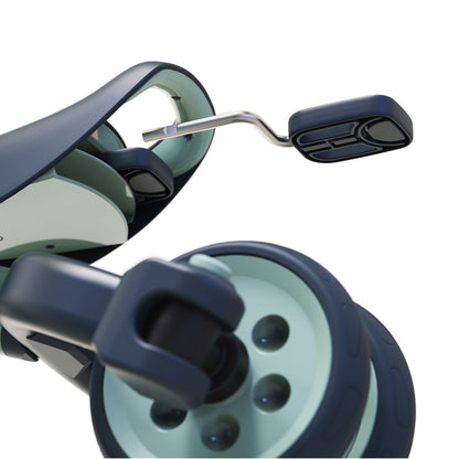 - Fixed rear leg design with wheels that swing and lock into place (Trike to Balance Trainer)
