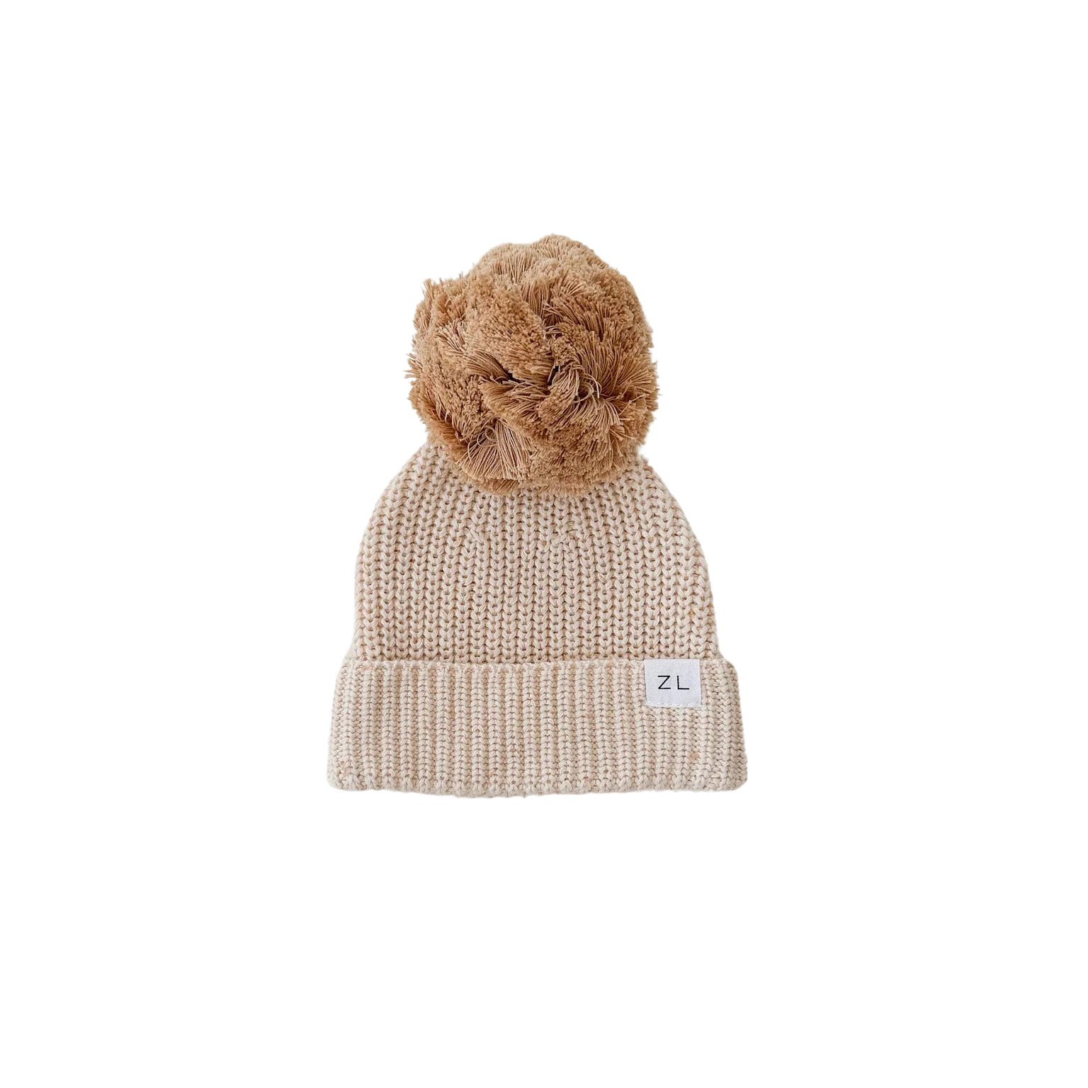 Our original chunky knit beanie in Biscotti Fleck with a Maple coloured pom pom. Pair with any of our Biscotti Fleck Signatures Collection.