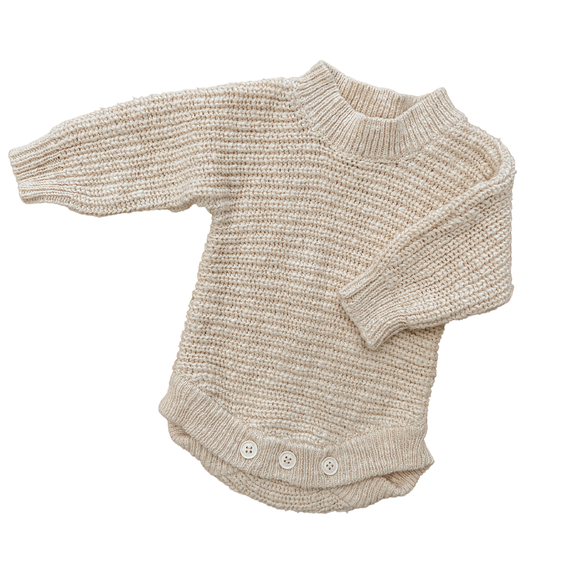 A beautiful knitted romper, with thick cuffs and a relaxed fit around the bodice. Designed to be a timeless keepsake to remember just how teeny, tiny they were. An heirloom piece to pass down to other siblings or a special something to pop in their keepsake box. Matching bonnet sold separately.
